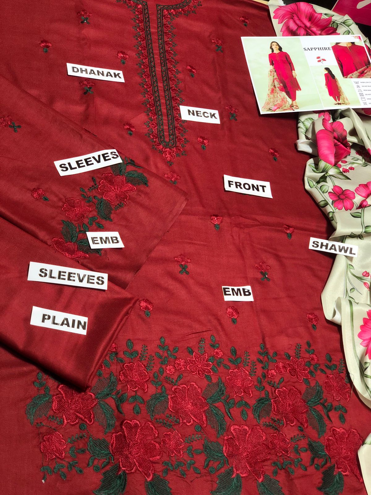 3PC DHANAK EMBROIDERED SUIT - SW606