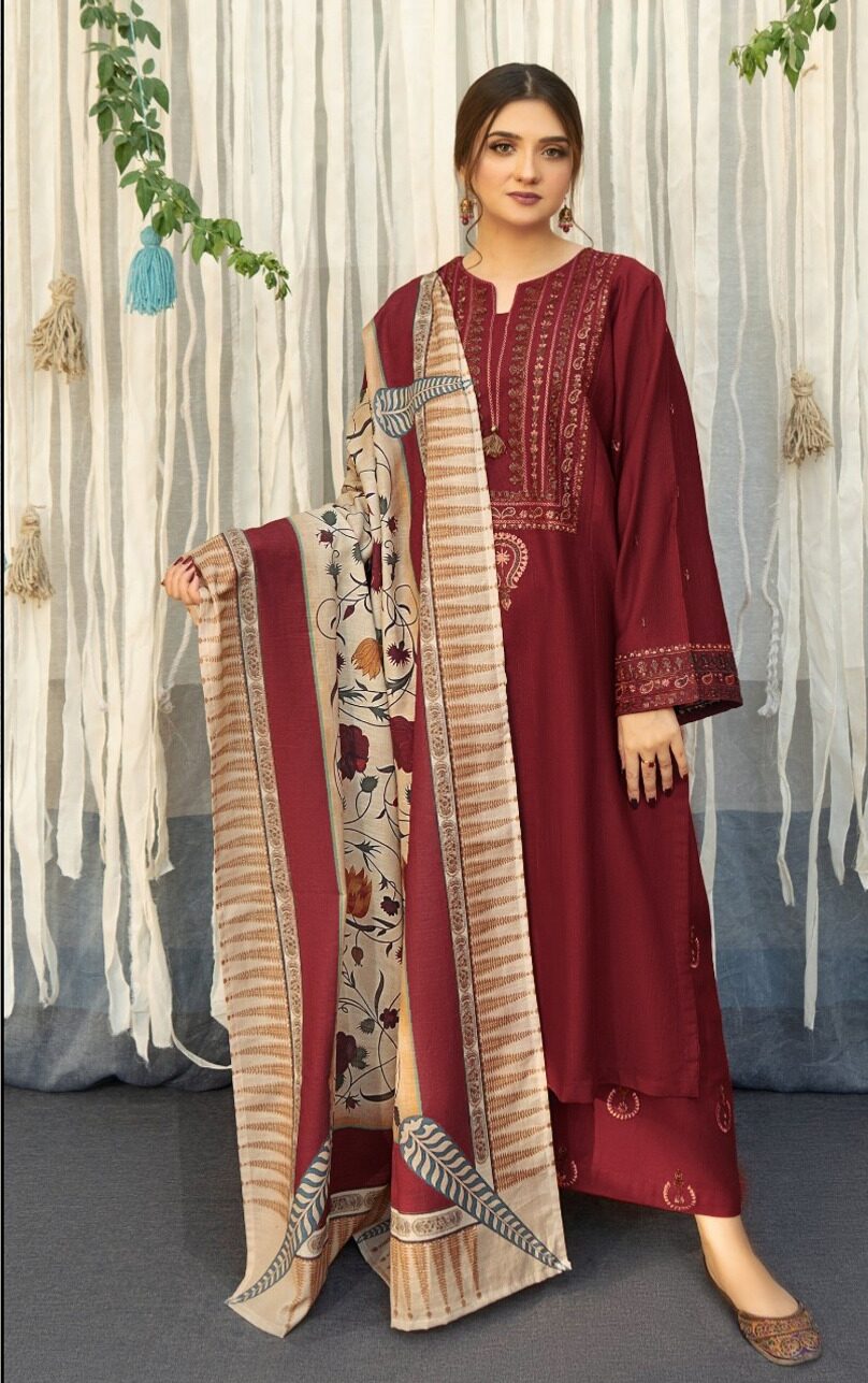 3 PC EMBROIDERED DHANAK SUIT - SW826
