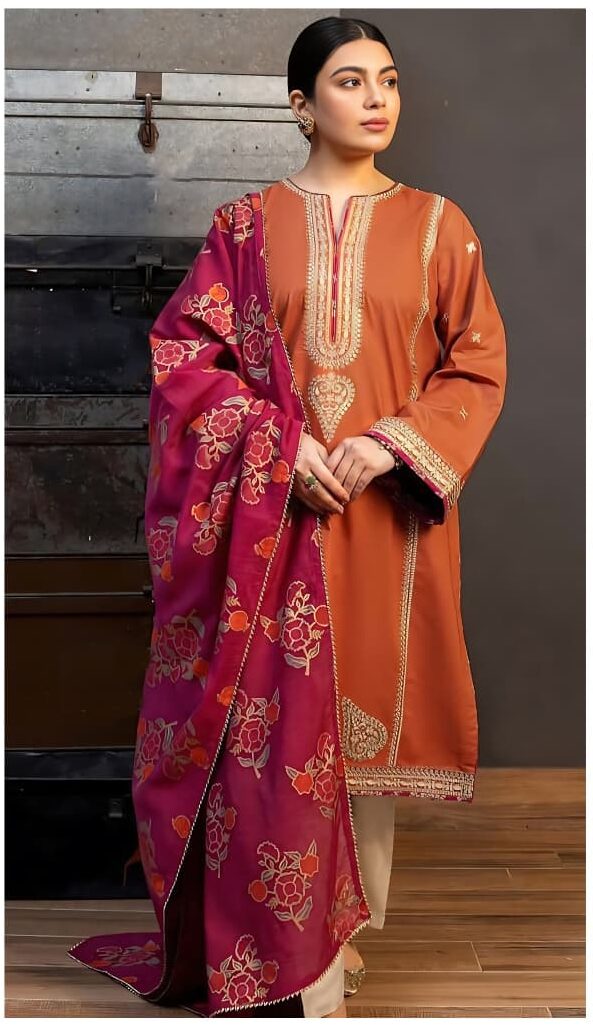 3 PC EMBROIDERED DHANAK SUIT -SW821 Original price was: ₨ 6,350.Current price is: ₨ 3,050.