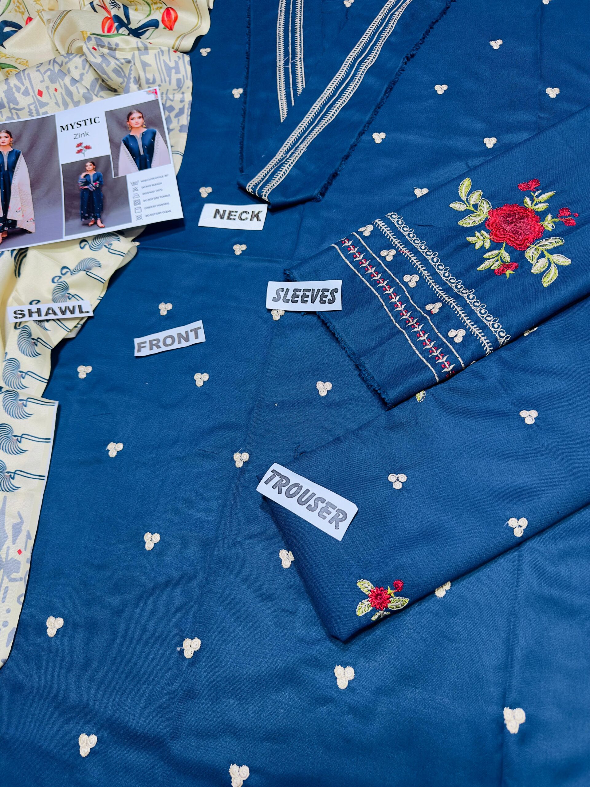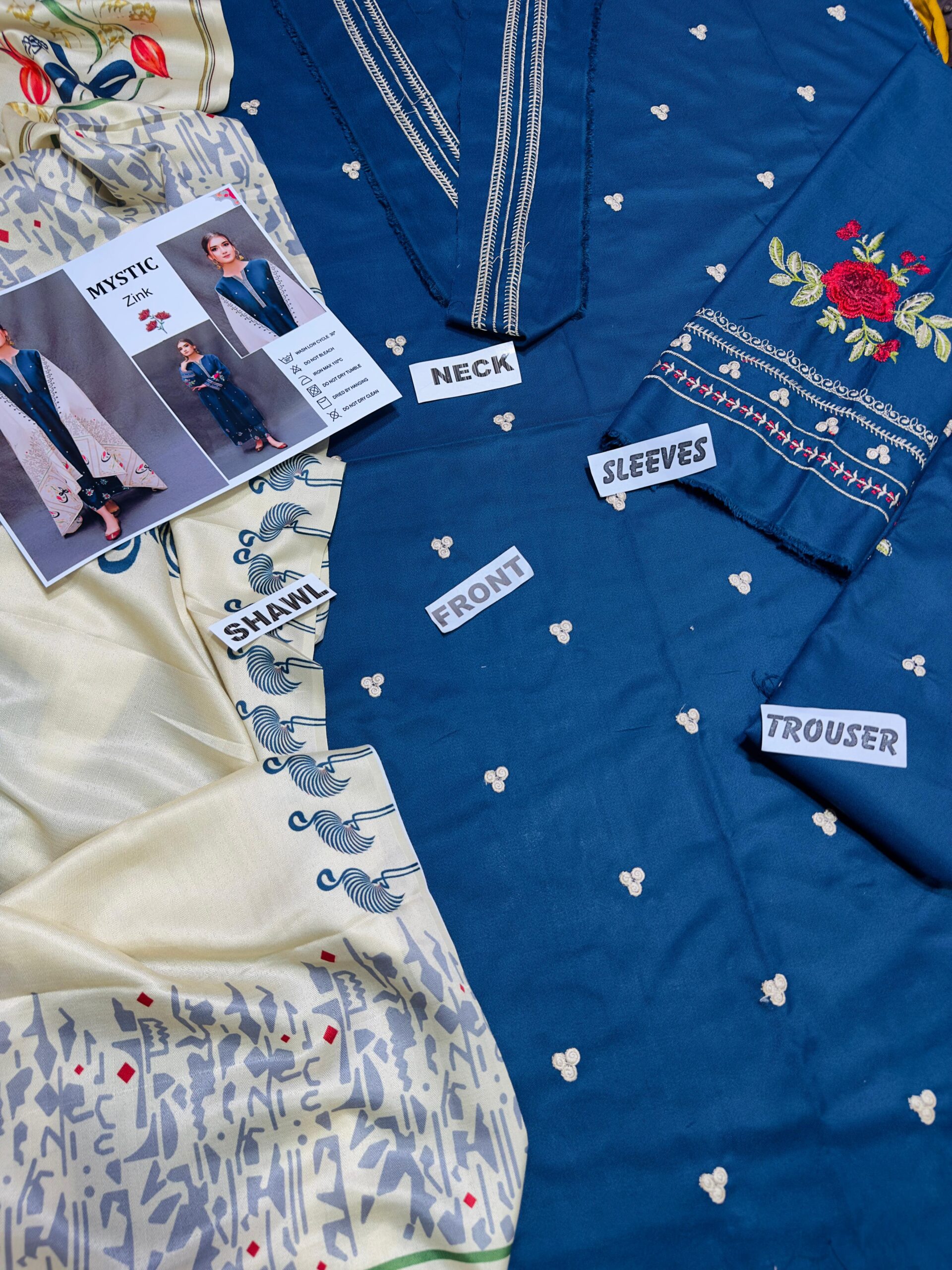 3 PIECE-EMBROIDERED DHANAK SUIT-SW559